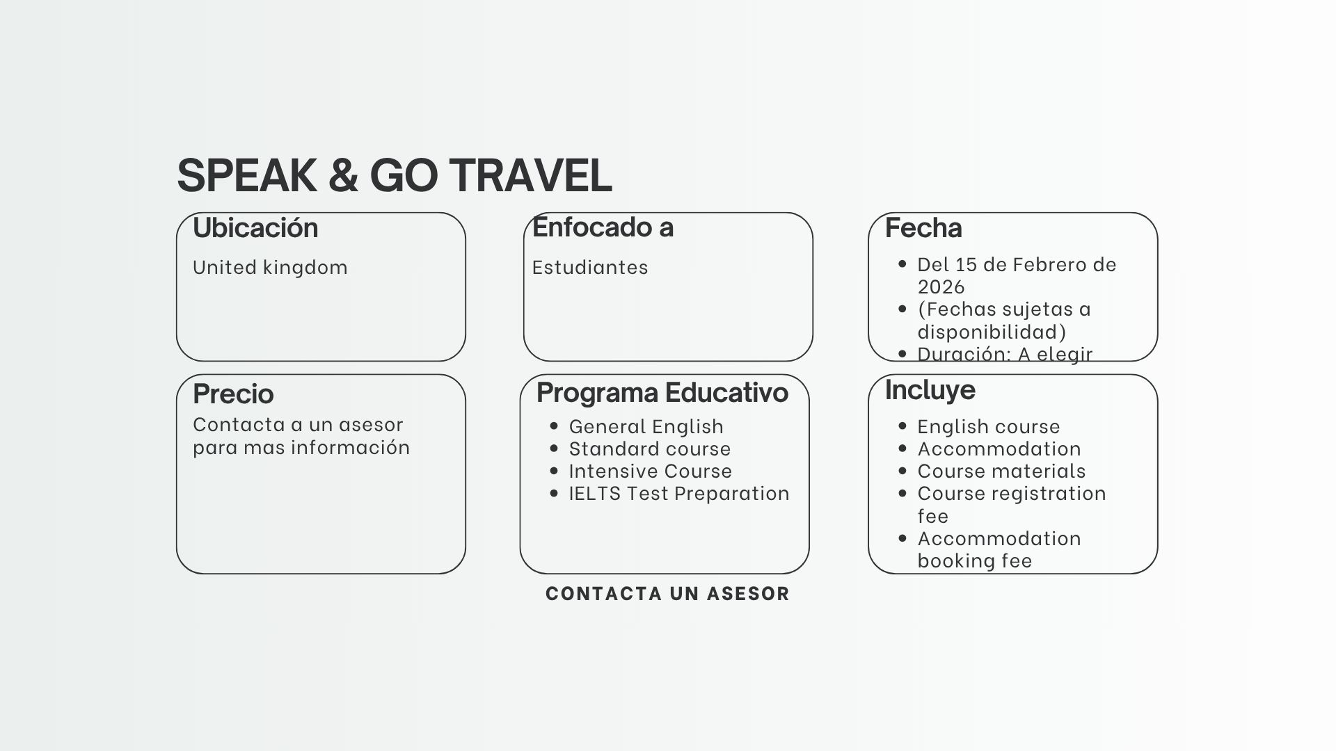 Ofrecemos la organización completa de viajes diseñados para estudiantes de todos los niveles, desde principiante hasta avanzado. Ellos podrán estudiar en nuestras escuelas asociadas, las cuales han sido cuidadosamente seleccionadas y cumplen con los más altos estándares de calidad educativa en el Reino Unido.